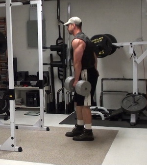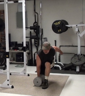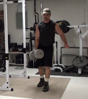 For this exercise, you're going to have more weight on one side of the bar then the other. In my case, I've got one 45 lb plate on one side and two 45's on the other. I would recommend you go lighter than this the first time you try it, though...trust me.