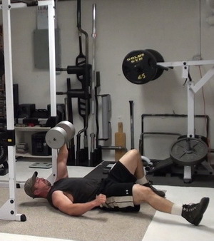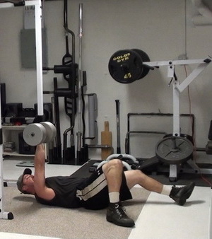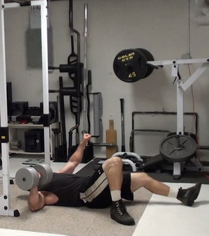 Exercise #1 - Lower Body/Upper Body Force Transfer - One-Arm Dumbbell Floor Press - 105 lb db x 5 reps each arm