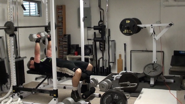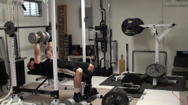 Part 1 - Heavy Flat Dumbbell Bench Press - 105 lb Dumbbells x 5 reps